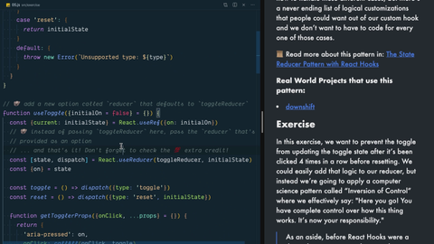 Kent C. Dodds 1: 0:00 All right. State reducer's probably one of my very favorite patterns. I love the state reducer pattern. It is super powerful, a great implementation of inversion of control.