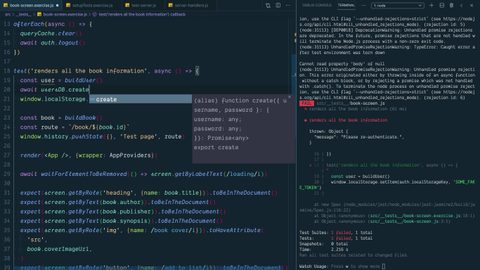 5:04 Let's save that and hopefully this passes, which it does. Awesome. We're in a really good place here now, because we can make as many of these tests as we want and we've already got all the endpoints or backend mocked out. We don't have to worry about it.