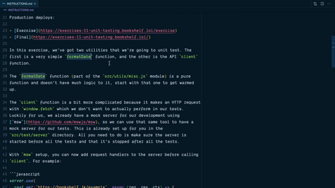 Kent C. Dodds: 0:00 As we make changes to our code, we want to make sure that we didn't break anything and so we're going to test it to ensure that we have confidence in shipping the code that we've changed.