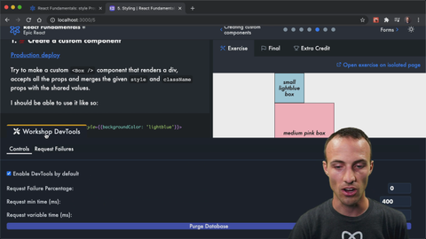 Kent C. Dodds: 0:00 I thought it would be useful to show you the process that I would recommend going through as you hit each individual exercise. We're going to start with the styling exercise in React Fundamentals.