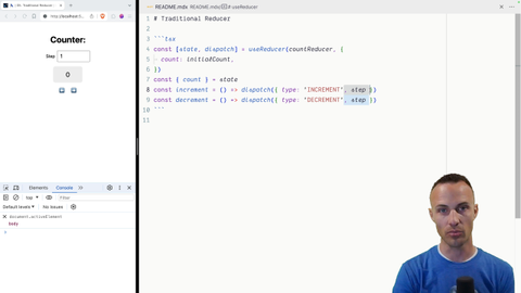 00:00 Alright, now it's finally time to get to more of the traditional conventional reducer that most people are writing. So here's the API that we want to support. We're still doing the object form because typically your reducer is going to be managing an object of state, multiple elements of state on there.