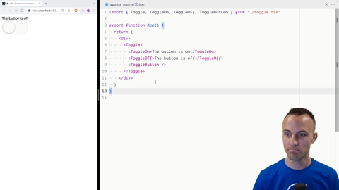 00:00 Let's dive into the toggle component. So right here, we're just returning to do. We don't want to do that at all. Instead, we want to render our toggle context and provide our state and our toggle function as part of that context, because all of our compound components need access to that. So I'm going to say toggle context,