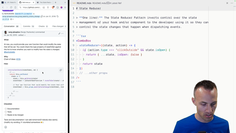 01:15 and ended up adding a new prop. We eventually decided to call it the state reducer prop. And so this allowed you to modify the changes that were about to happen. So we'll tell you, hey, when you are going to make a change, here are the changes that are going to happen,