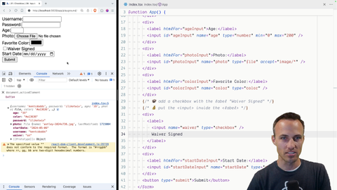 00:00 All right, let's get our waiver signed. We'll add a div right here. And we're going to have, yeah, the AI assistant wants us to do it this way just because it matches everything else. But we're not going to do it this way. Instead, we're going to have our label there. And we don't need that ID anymore.