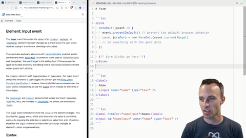 00:17 We'll actually add a couple event handlers and stuff like that, too Even though we haven't actually gotten into state management with react yet. We'll be doing some Some extra cool things with forms and form data and all that stuff So yeah, the form element you can learn all about this on MDN Tons and tons of stuff that you can do with this the action method