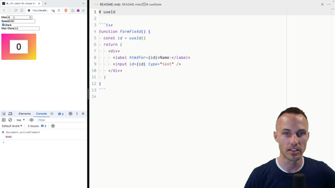 00:37 That's not good for accessibility. It's not good for user experience at all. So your job is to associate those properly, but to do so using use ID. So have a good time.