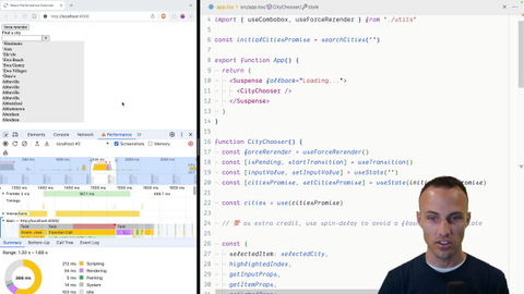 07:14 moving things over to a WebWorker, handling the asynchrony with the awesome APIs that React gives you for doing that. And now our experience is way, way faster, not just re-computing existing values and avoiding things with useMemo, avoiding unnecessary computation with useMemo, but even just the process