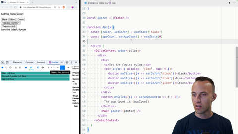 02:18 Isn't that cool? Just by putting stuff into context, we can move this outside of the render entirely and reuse that react element over and over. Now, the real trick is, but wait, does that re-render at all? Because it should re-render when the color changes. And my friends, it definitely does.