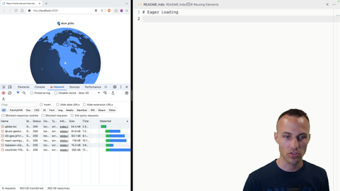 00:00 One thing that I'm not super jazzed about is if I'm on a slow 3G network, and this is the first time I've ever loaded this before. So here, let's let's speed this up. We'll do a full page refresh with no cache and everything. And then we close this out. Slow 3G network. If I show the globe, I'm like sitting here. I'm ready to show the globe. Awesome. Boom.