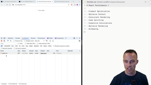 00:00 Hello and welcome to the React Performance Workshop. I'm Kent C. Dodds and I am excited to take you through this whirlwind tour of a bunch of different things that you have at your disposal to optimize things for performance. Before I get into showing you what we have to look forward to, I just want to like emphasize