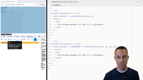 01:33 Is the function itself slow or maybe there's some other explanation? So I want you to play around with this a little bit. The actual solution to this specific scenario is pretty simple. You add a use memo, but I want you to explore the performance tab a little bit to get an understanding for why is this particular thing kind of slow?