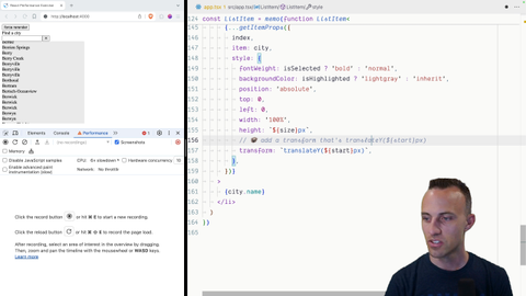 04:02 Transform come on a I assistant you can help me with this. Thank you to translate Why with the start being set to the start pixels and so react virtual? There were the virtualizer is going to give that to us and all of that Should get us in a pretty good spot for this so we're on a 6x slowdown still