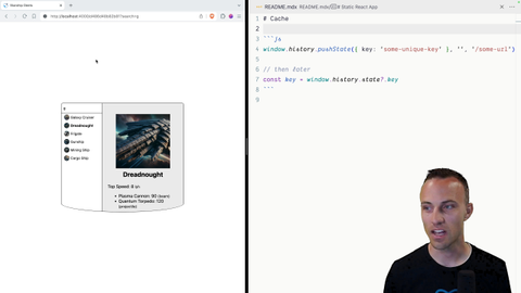 02:59 it's not going to suspend because it's in that cache immediately. We're going to do this by setting a unique key every time we call push state, and so we put that key in there. That's going to be the key for our cache item, and then when we go to look up our content,