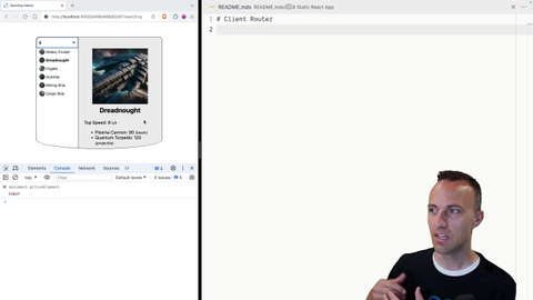 00:00 So you may remember that we don't actually have a router in this app. And so every time you click on one of these, it does a full page refresh if you want to do a full page search. Or when you do a search, it does a full page refresh there too. Not my favorite thing to do here. And so we're going to add a client-side router now