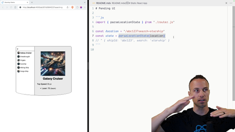 00:19 But we definitely want to have some sort of pending state. We want to do similar things to what we've done before with spin delay and all that awesome stuff. So, that's what you're going to be doing in this exercise. One of the utilities you're going to want is parse location state. So you pass this, whatever the current location is, and it's going to give you an object.