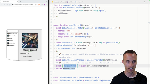 02:55 We trigger the request. We're going to get our content key. And when this request is finished streaming, then we're going to update our content key. But while that request is in flight, we're also going to parse the RSC content into React elements. And that's going to be our action response promise.
