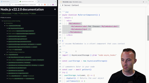 01:56 But for your server components, you're going to be using this async local storage utility from Node. So here we create an async local storage instance. We can call it whatever we want to.
